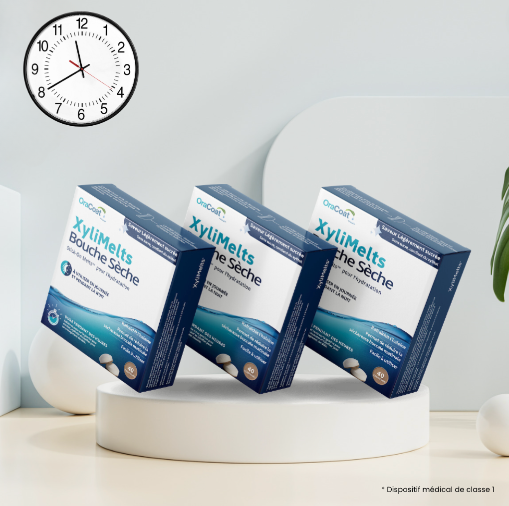 Fini les sensations de bouches sèches matin et soir. XyliMelts stimule votre production de salive naturelle.
